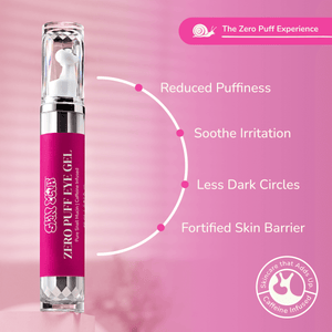 Start with Zero Puff Eye Gel (20 ml | 0.67 fl. oz.), a caffeine-powered, snail-enriched formula that targets puffiness, dark circles, and fatigue around the eyes, its cooling roller-ball applicator refreshes instantly, helping tired eyes look calm, awake, and ready.