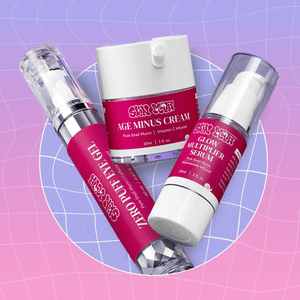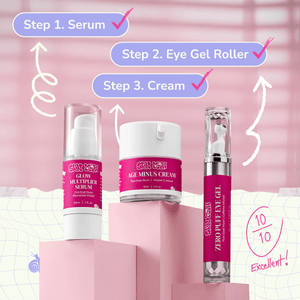 Seal it in with Age Minus Cream (30 ml | 1 fl. oz.), a weightless, repairing cream made to combat early signs of aging, powered by Allantoin, Aloe Vera, and Jojoba Oil, it strengthens the skin barrier, restores elasticity, and smooths texture without feeling heavy.